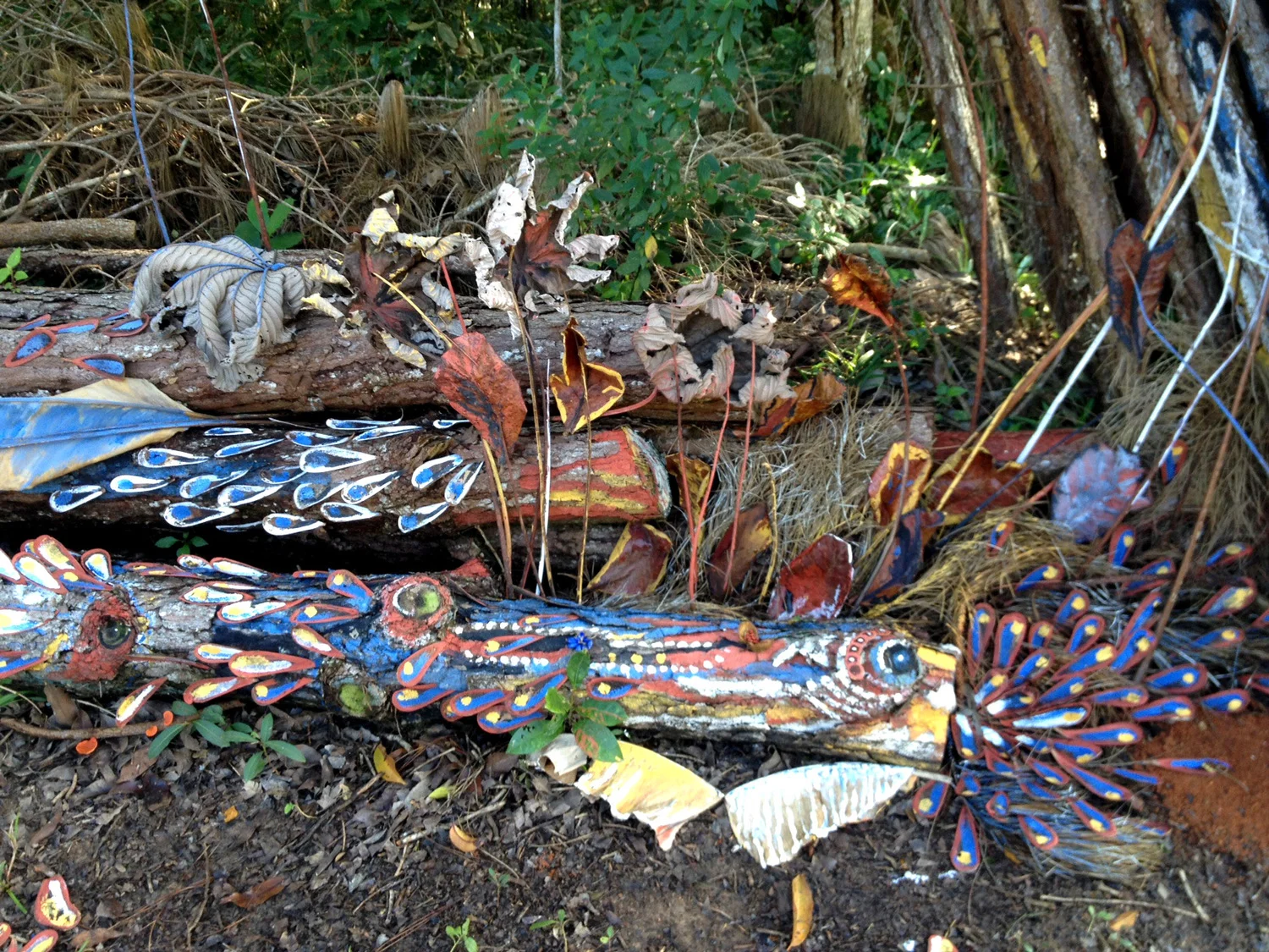 Leakin Park in Baltimore has a bad reputation; I found it enchanting, peaceful and beautiful. I painted the dead brunches and vines, envisioned it as a three dimensional canvas, looking for negative spaces, structures, colors and rhythms. The paints I used are milk paints and non toxic pigments.